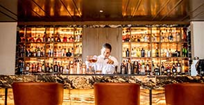 Насладитесь одним из наших коктейлей Worldly Classics, приготовленных и смешанных с особым искусством из самых вкусных ингредиентов со всего мира. С просторной открытой террасы открывается панорамный вид, который создаёт романтичную атмосферу.